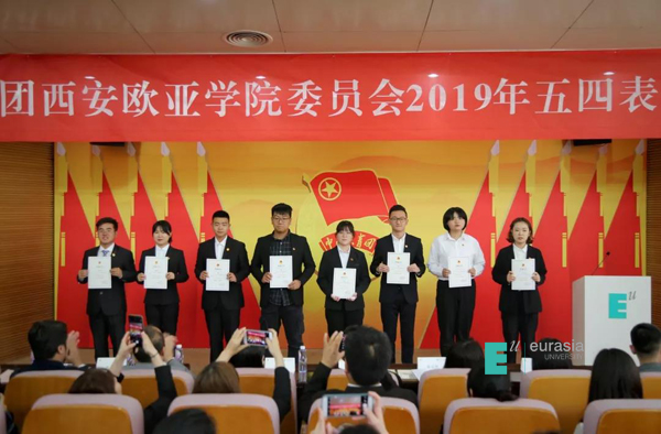 (图一)大会现场 (图二)奏唱《中华人民共和国国歌》 (图三)校党委书记于孟晨致辞 (图四)校团委书记、学生发展处副处长宣读表彰决定 (图五)校长刘瑾教授为五四红旗基层团委颁奖 ...
