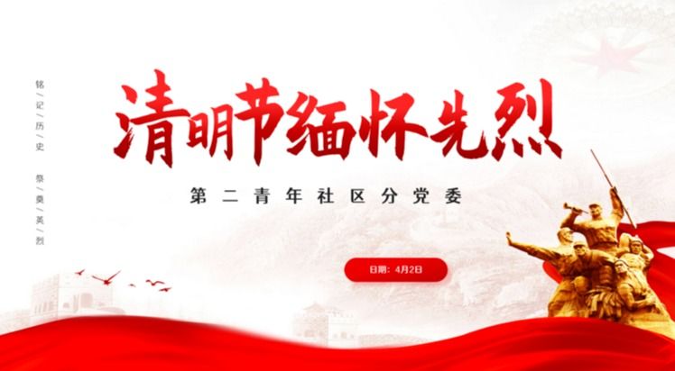 为深切缅怀革命先烈,传承红色基因,厚植青年学子的爱国主义情怀,4月2日,第二青年社区分党委组织开展“清明节缅怀先烈”线上祭奠活动,追忆先烈们的不朽功绩,赓续红色精神血脉,汲取奋进力量。本次活动通过分享先烈们的英勇事迹,弘扬先辈们的革命精神,激励青年学子以先烈为榜样,努力学习,立志报效祖国。活动表达了对先烈们的无限敬仰与深切缅怀,使同学们深刻意识到传承先辈精神的重要性,进一步增强大家的历史责任感与使命感。...