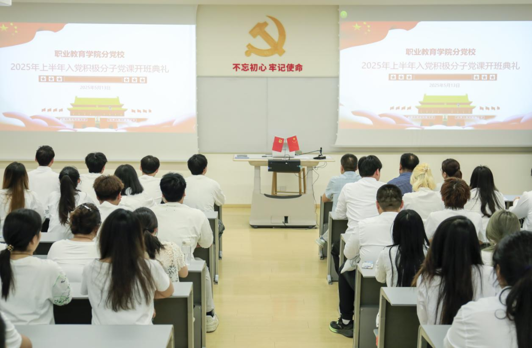 5月13日,职业教育学院分党委2025年上半年入党积极分子党课培训班开班典礼在北E-107隆重举行。分党委副书记王先昌同志、纪委委员张静同志、青年委员李鹏同志以及全体学员参会。全体起立奏唱国歌开班典礼在庄严的国歌中拉开了序幕。首先,全体参会人员共同观看了宣传片《你,为什么入党》。该片通过生动的案例和深刻的阐述,引导入党积极分子深入思考入党初心,激发了大家对党的热爱和向往之情,现场气氛庄重而热烈。职业教育学院分党委副书记王先昌做动员讲话职业教育学院分党委副书记王先昌同志发表了动员讲话。...