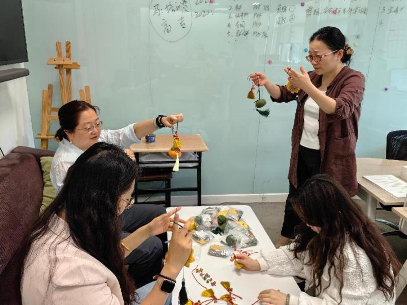粽叶飘香,艾草沁人。为弘扬中华优秀传统文化,在端午佳节来临之际,教务处举办了“端午巧手传民俗”主题活动,组织大家缝制香包、编织五彩手绳等。活动伊始,每个人分别挑选出自己喜欢的布料包,进行穿针引线,填充艾草,一针一线缝制出形态各异的香囊,有“柿柿”如意、万事顺“梨”、好运“莲莲”、一举夺“葵”,老师们亲手创作出自己的香包作品,在愉快的氛围中感受着传统文化的魅力。编织五彩手绳的环节同样轻松愉悦,桌上摆满各色粽子小挂件和小扫帚增加了节日气氛。...