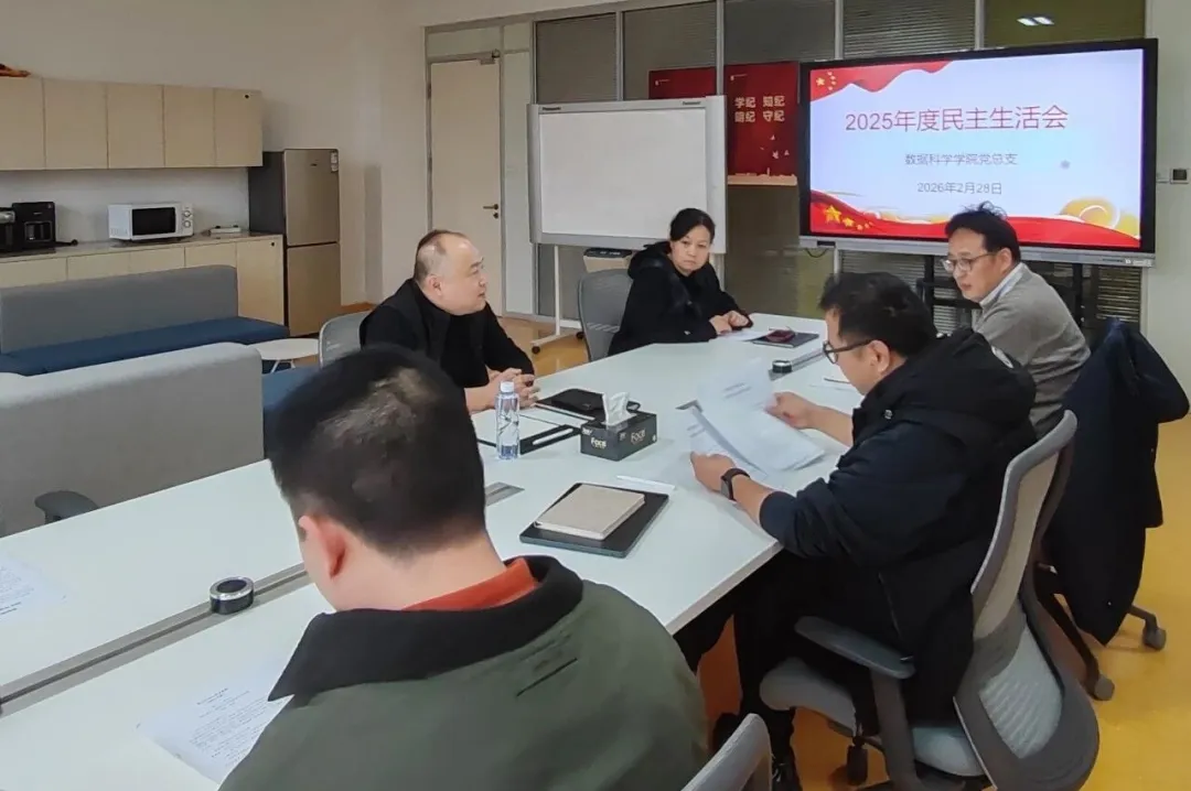 根据校党委《关于开展2025 年度基层党组织组织生活会和民主评议党员工作的通知》安排,2月28日,数据科学学院党总支在南D215召开2025年度民主生活会。会议以“深入学习贯彻习近平新时代中国特色社会主义思想,全面贯彻落实党的二十届四中全会精神,以打攻坚战、持久战的决心和恒心,锲而不舍落实中央八项规定精神,推进作风建设常态化长效化,以优良作风凝心聚力、真抓实干,奋力开创中国式现代化建设新局面”为主题,紧密结合实际,...