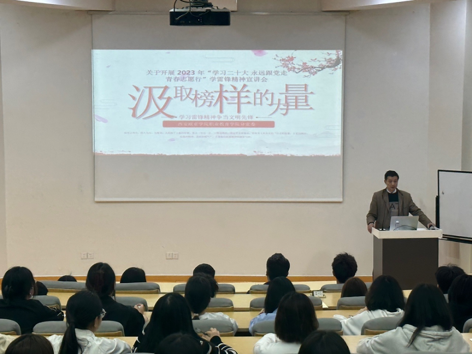 为深入学习贯彻习近平总书记对雷锋活动做出重要指示,把雷锋精神代代传承下去,引导激励广大青年为全面建设社会主义现代化国家、全面推进中华民族伟大复兴贡献更多智慧和力量。2023年3月6日晚,职业教育学院分党委于西区教学楼001教室组织专题宣讲,100余名学生党员、积极分子参加,会议由体育服务系党支部组织委员兑忠胜老师主持,职业教育学院大学生宣讲团王亚文同学进行宣讲。兑忠胜老师主持王亚文同学宣讲 宣讲主体围绕雷锋精神,...
