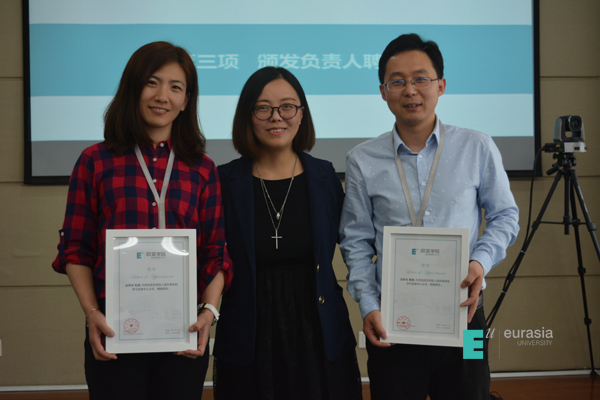 组织机构的改革是基于人居环境学院发展的阶段要求,加强部门、人员之间的沟通和融合,提供工作效率、减少沟通成本,以专业建设和发展为导向,助力学院和教师的发展。自然而然,基于新的组织机构,学院根据专业建设、工作室建设、部门核心业务发展的需求进行了负责人员的重新梳理、竞聘、任命等。殷颖迪、雷春妮副院长为负责人员聘书颁发环节,全场响起热烈掌声,对各位同事新的任命表示由衷祝贺。