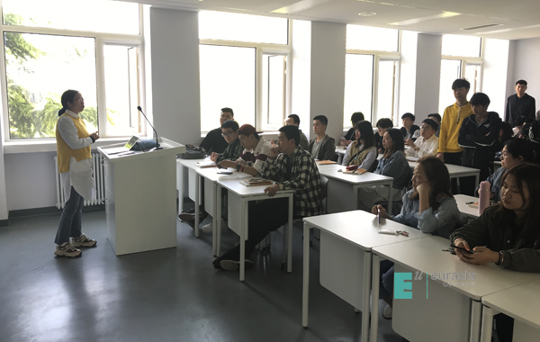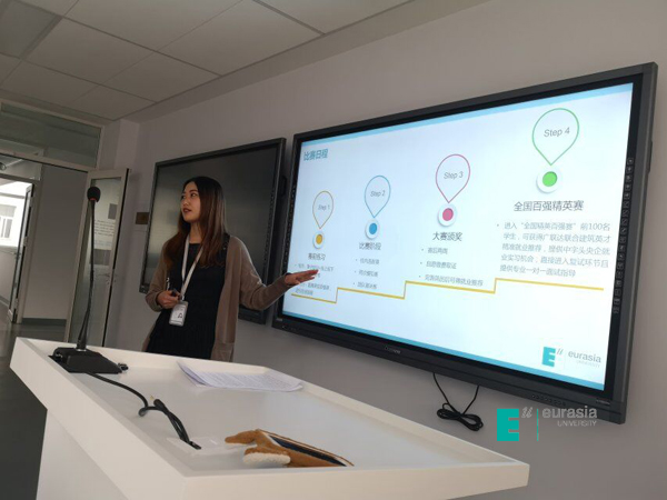 (图四)宣讲会中张璐老师向同学们介绍本次比赛