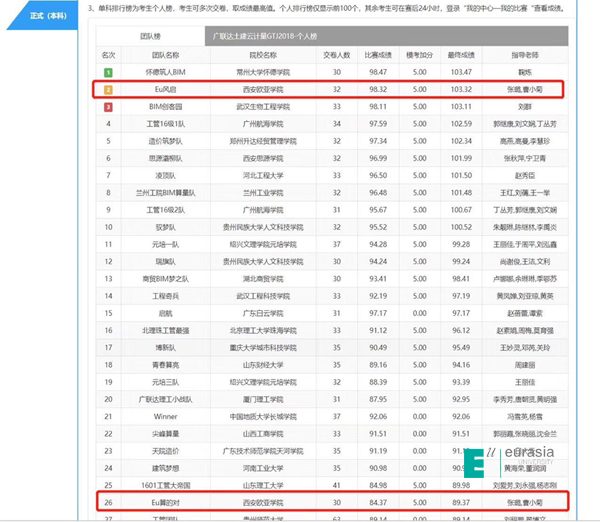 本次比赛人居环境学院共计63名学生参与其中,涵盖了分院的各个年级各个专业。在全国百余个队伍的决赛角逐中披荆斩棘,“Eu风启”, “Eu算的对”两个团队最终都取得了不错的成绩:“Eu风启”队全国排行第2名 (一等奖)“Eu算的对”队全国排行第26名(三等奖)。