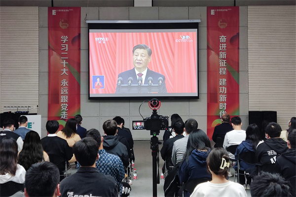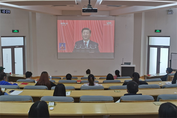 师生纷纷表示,党的二十大是在全党全国各族人民迈上全面建设社会主义现代化国家新征程、向第二个百年奋斗目标进军的关键时刻召开的一次十分重要的大会。习近平总书记作的报告,全面总结了过去五年的工作和新时代十年的伟大变革,科学谋划未来五年乃至更长时期党和国家事业发展的目标任务和大政方针,提出一系列新思路、新战略、新举措,令人倍感振奋和鼓舞。我们要更加深刻领悟“两个确立”的决定性意义,增强“四个意识”、坚定“四个自信”、做到“两个维护”,全面贯彻习近平新时代中国特色社会主义思想,踔厉奋发、勇毅前行,为全面建设社会主义现代化国家、全面推进中华民族伟大复兴而团结奋斗。