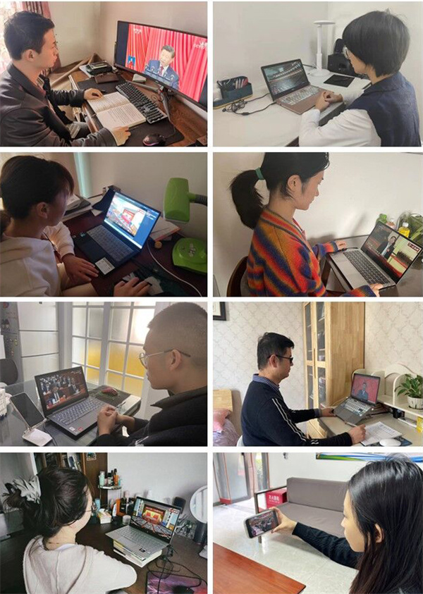 (图九)居家办公教职工在家通过网络、电视等观看直播