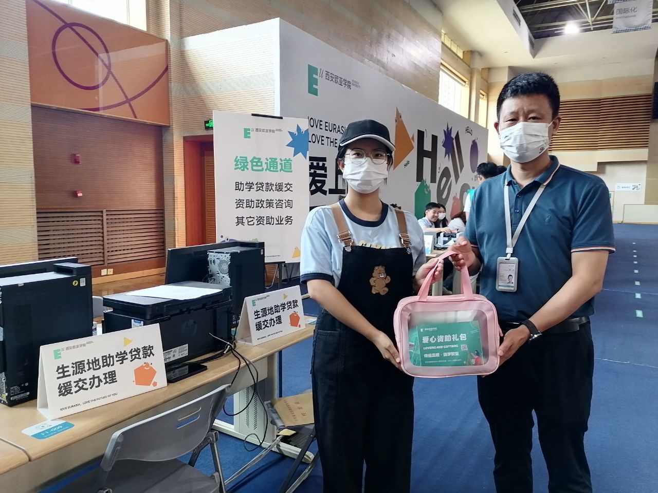 暖心礼包,传递关爱。在2022年新生报到现场,线下“绿色通道”给学生提供了方便、快捷、暖心的资助服务,帮助学生顺利入学。学校资助管理中心还为困难学生精心准备了“爱心资助礼包”,包含洗衣液、洗发水、毛巾等学生必备的日常生活用品。学校各级领导高度关注家庭经济困难新生的入学情况,多次到“绿色通道”现场检查指导工作,详细询问“绿色通道”办理情况,和家庭困难学生亲切交谈,为学生发放“爱心资助礼包”,让家庭经济困难学生一进校门就能感受到学校的关怀和温暖。