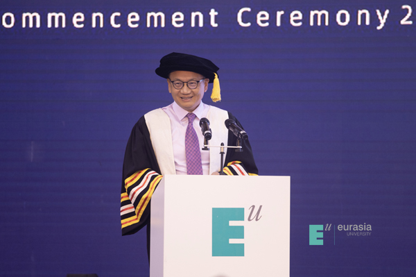 亲爱的同学们,关于你们的人生和未来,我还有太多想说的话。我会把它们逐步凝练和总结出来,运用于欧亚学院的规划建设和教育教学之中,也借每年这样的机会,传递给我们的师生和校友,我也欢迎你们多回来,感受母校的变化与成长。(掌声)