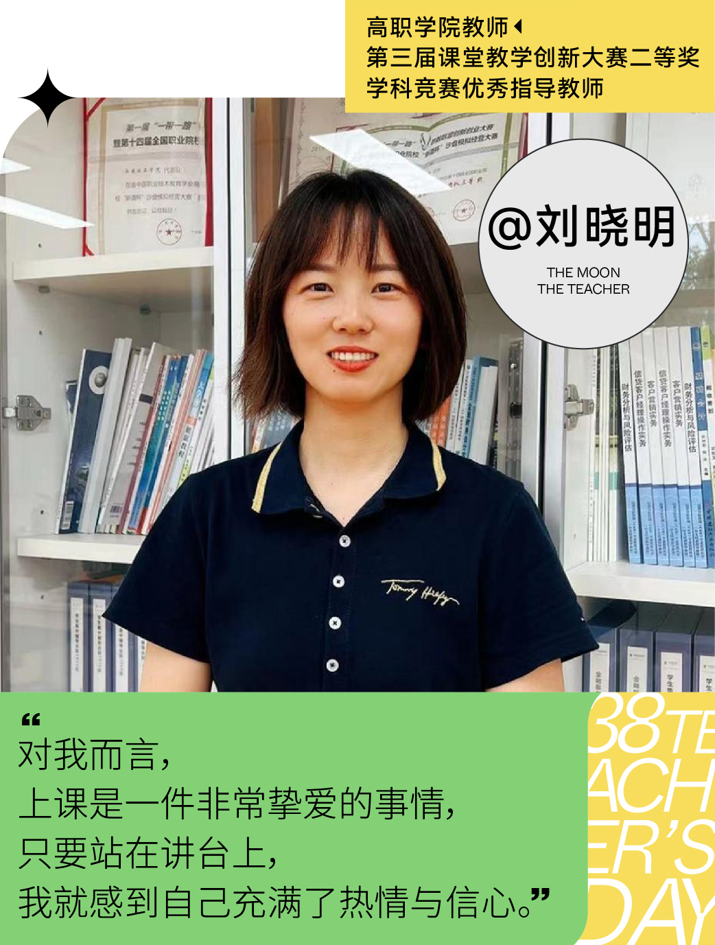 “所以我想通过课堂教学告诉他们,所谓的星辰大海,是依靠自己的努力,未来无关学习成绩高低,只要你愿意去思考、去努力,你就是赢家。”她始终鼓励学生们去发散出各种回答,并引导学生把实际的项目搬到课堂里来。“《市场营销》这门课,理论知识不是很深奥,但是操作起来就很难,所以必须用实际的项目来让学生理解。”对于讲台下的学生们来说,刘老师的课是一个真实项目实践的过程,于刘老师自身,她的教学则是让项目回到课堂、把知识点应用起来。