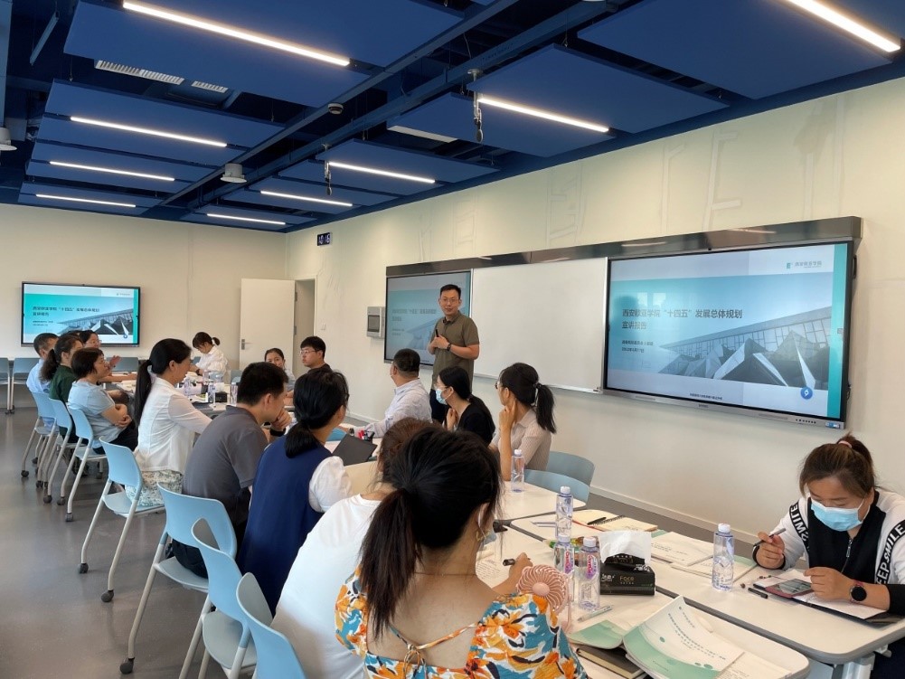 研讨伊始,由战略委员会赵健委员向全体员工宣讲了学校“十四五”发展总体规划。赵老师从灵魂、战略、规划和工具四个方面给大家详细解读了欧亚战略规划的层次结构,让老师们对学校使命、愿景、价值观、办学理念、战略定位、行动方案以及环境条件等等方面都有了更深刻的认识。同时,赵老师明确提出学校实行的“10-5-1战略管理模式”,即“四四二”十年战略与“十四五”五年规划并行实施,其中“四四二”战略是欧亚战略发展方向,“十四五”五年规划是刚性目标,并明确了“十四五”要解决的培育学术增长点,打造核心竞争力,拓展收入增长源三大核心问题。在此基础上,赵老师提出开放办学是学校国际化战略和应用型定位的基本要求,对如何实施“开放办学”也详细阐述了学校的治理体系。