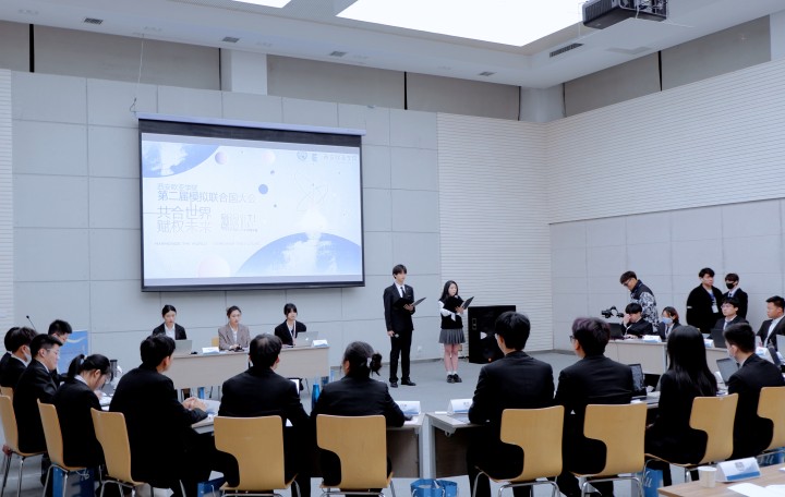 本届模联大会围绕世界性的议题——“对第二第三世界国家民生可持续发展的维护”(The United Nations General Assembly - Safeguarding the Sustainable Development of the People's Livelihoods of Second and Third World Countries),共设22个国家“席位”。通过真实模拟联合国大会的动议磋商、自由辩论、文件写作等方式加深对国家间差异的认识和对于规则、法度的敬重,来自全校各社区的师生共计100余人参加了本次活动。