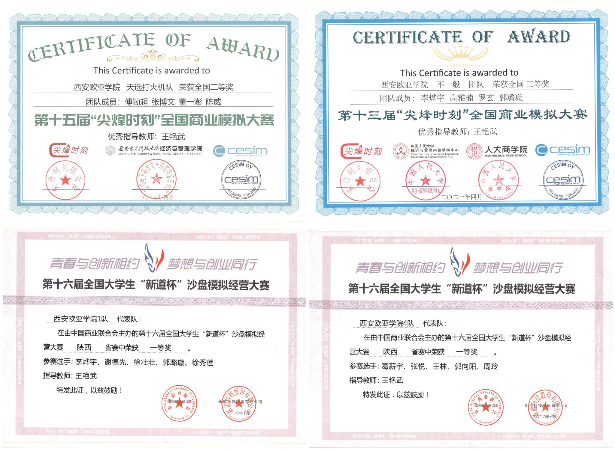 (图三)三年来,王艳武带领累计超80余名学生收获各类高层次商业竞赛奖项,极大帮助学生成长