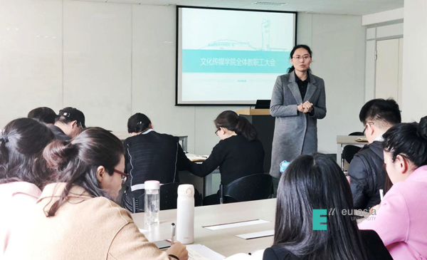 闫晋瑛副院长首先总结了2017年工作执行情况,充分肯定了学院在过去一年取得的成绩和突破,对学院全年工作目标量化指标考核不足之处与优化空间进行了解读,同时也指出今后会加强重点内容建设以及业务执行工作,凝心聚力,贯彻落实学校发展规划,不断推进我院改革创新发展。会上,闫晋瑛副院长还传达了《2018年KY开元集团官网入口工作要点(核准稿)》文件精神,从我院2018年的具体工作部署对“三创教育(创意、创新、创业)”、“数字化转型”、“国际化教学理念”等方面内容进行了落地解读,强调了我院本学期的工作重点,为圆满完成本学期各项工作奠定了基础。
