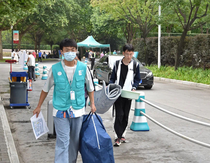 (图二)迎新志愿者帮助新生搬运行李
