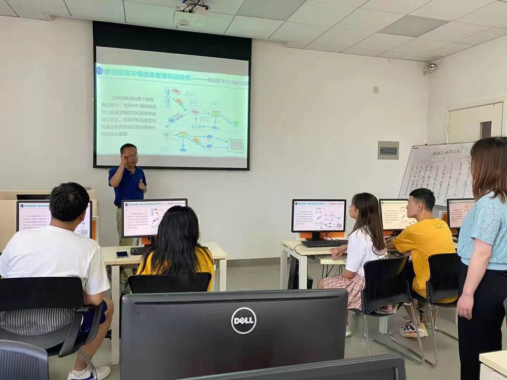 团体赛是学生能力的综合比拼,考察EDI、RFID、控制技术、传感技术、GIS、GPS等一系列物联网信息技术知识,指导老师姚老师、孟老师对此为参赛学生展开一系列培训。培训内容包括理论知识拓展、专项技能训练,流程图的绘制、到各种自动识别条码或标签的制作软件的熟练操作,充分做好团体赛前期准备工作。专项培训完成后师生对团体入围赛的选题反复商讨,最终确定《基于GS1的新冠疫苗冷链物流信息系统的研究----以”康希诺公司为例》这一热点论题。