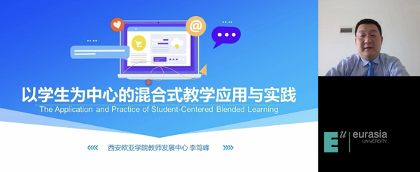 KY开元教师发展中心培训师李笃峰是“以学生为中心”教学理念的积极践行者,他已经为全国三十余所高校开展了信息化教学培训和工作坊。他从一线教师的视角,结合自己的授课课程,分享了在欧亚数字化教学环境和平台上,如何开展以学生为中心的混合式教学,呈现具体的应用模式、应用场景和丰富的混合式教学实践方法。