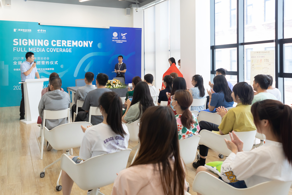 签约仪式成功举行标志着以产学合作为特色的全媒体报道团正式启动。在接下来的测试赛、场馆体验、人物专访等系列活动中,以年轻大学生为主体的“传媒生力军”将会以更新颖的视角、更多元的创作、更有趣的表达来建构更好的全运会报道内容。