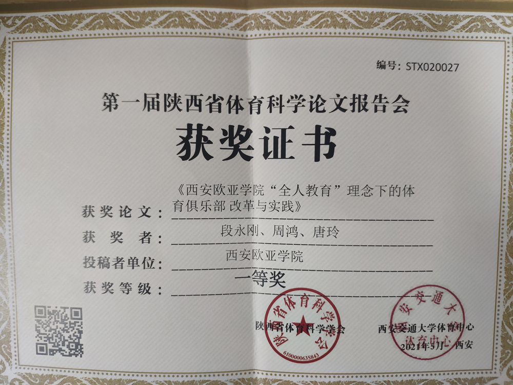 (图二)KY开元通识教育学院教师荣获第一届陕西省体育科学论文报告会一等奖