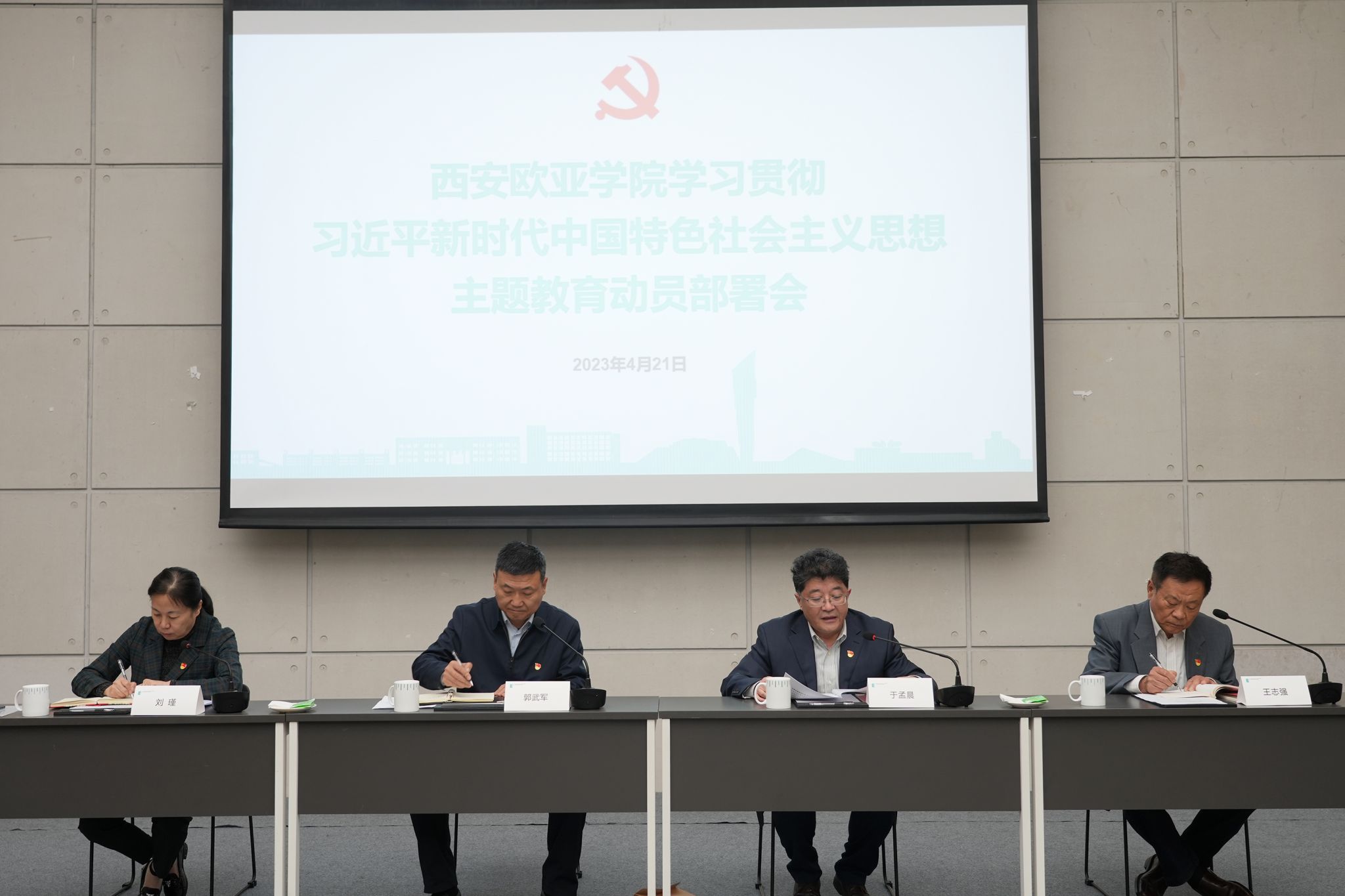 4月21日下午,KY开元集团官网入口召开学习贯彻习近平新时代中国特色社会主义思想主题教育动员部署会。校党委书记于孟晨作动员讲话,省委教育工委、省教育厅主题教育第二巡回指导组组长郭武军作指导讲话。会议由校党委副书记、校长刘瑾主持。