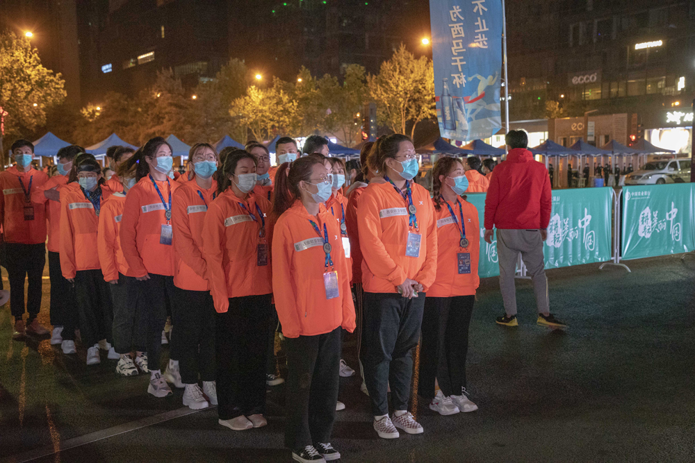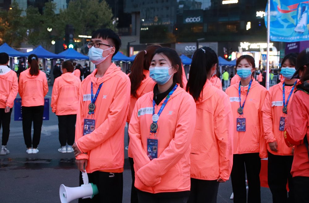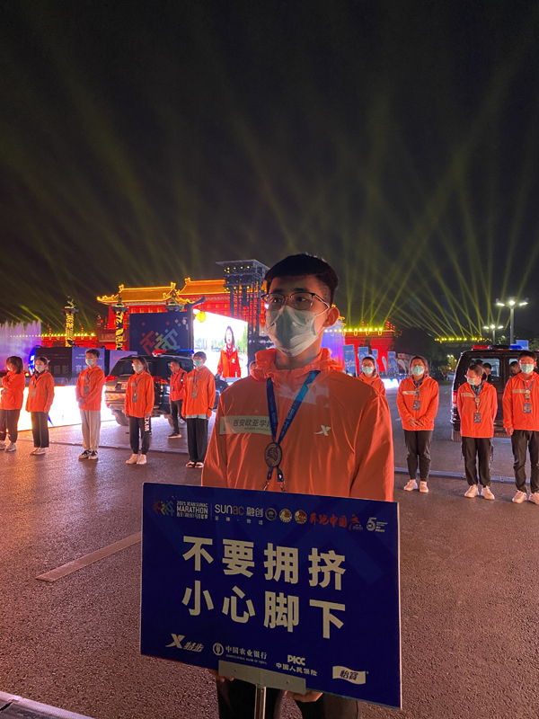凌晨3:30,志愿者们在学校东门集合完毕,凌晨4:50准时到达永宁门。志愿者们认真工作、坚守岗位,用实际行动践行着“奉献、友爱、互助、进步”的志愿服务精神,让参赛选手们感受到了古城的温暖与魅力,展现了欧亚学子的青春魅力。西马五载,为爱而来!从2017年参与第一届西安国际马拉松开始,欧亚学子与西马一路相随,连续五年为西马赛事保驾护航,从未缺席,共累计派出2168名志愿者。