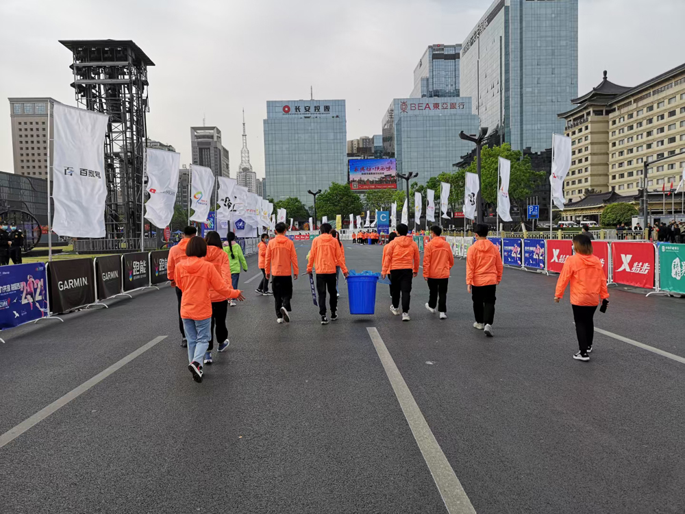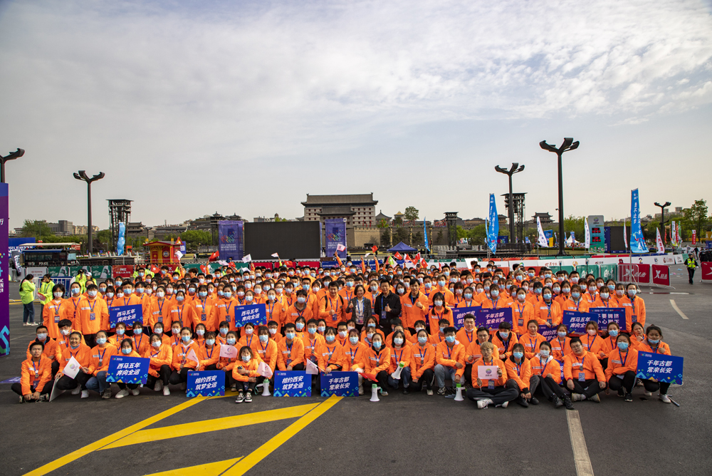 迎接2021年第十四届全运会的到来,营造全民全运、同心同行的积极氛围,2021年西安国际马拉松赛在永宁门鸣枪开跑!2.8万名跑者们用脚步丈量大西安的古老文明和现代时尚。除了场上选手们的精彩表现,来自KY开元的350名志愿者们,承担了永宁门起点服务工作,他们身着橙色衣服,亦是一道亮丽风景线。