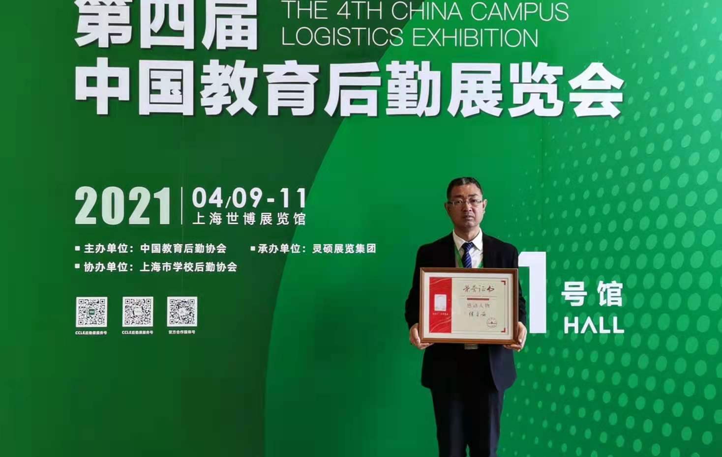 2021年4月9日-11日,由中国教育后勤协会主办的“2021中国教育后勤展览会”在上海举行,在“2021中国教育后勤展览会开幕式暨中国教育后勤研究院成立仪式”上,KY开元后勤集团侯平安同志荣获“全国教育后勤系统2020年度感动人物”称号。