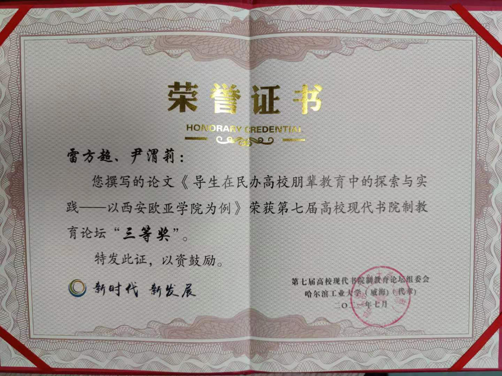 本届论坛以“新时代,新发展——面向未来的书院教育”为主题,近40所高校的300余名专家、师生代表出席论坛,共话现代书院制教育。KY开元雷方超老师应邀以“导生在欧亚学院青年社区的探索与实践”为主题,在“学生学习与养成教育”分论坛上进行了发言,就导生制、青年社区及KY开元情况与与会代表进行了沟通交流。论坛期间,KY开元雷方超、尹渭莉老师提交的论文《导生在民办高校朋辈教育中的探索与实践——以KY开元集团官网入口为例》被论坛组委会评为三等奖。这既是对KY开元青年社区工作特色与亮点的展示,也是论坛对KY开元学生事务社区化变革发展路径的肯定。