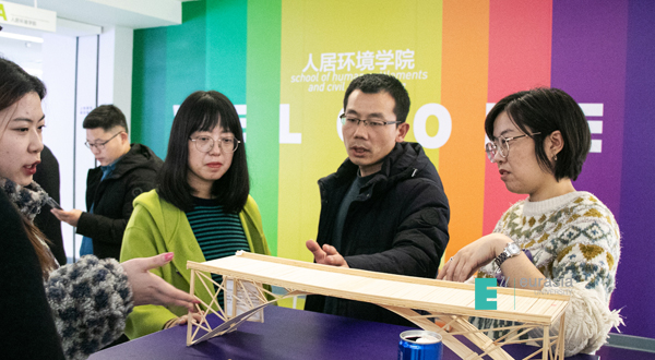 课程建设方面,对于 《结构力学》的课程改革上,人居土木专业王群老师代表学院课程小组,从学生成长、教学改革、科学研究以及对外合作交流四个方面向与会嘉宾进行了结构力学的课程分享。同时智能建造1901班的学生马忻雨,分享了她参加结构力学课程大赛以来的感触和收获,讲述了自己通过小组的努力和老师的协助,搭建桥梁模型的趣事。她们的作品也得到了英国哈德斯菲尔德大学——阿德里安·皮茨教授和马来西亚吉隆坡大学——诺哈亚·诺丁教授的高度认可和鼓励。