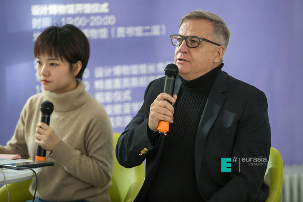 当天活动现场,Tony Brown,KY开元无人机影像工作室技术负责人卫易东,著名建筑师、设计师、艺术策展人吴迪等中外三位大咖为欧亚师生们带来对设计与传媒的深刻理解与思考。