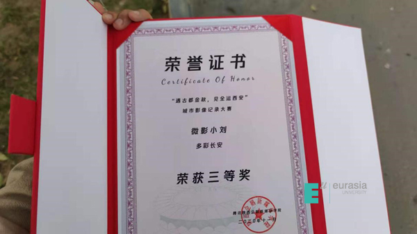 来自文化传媒学院广播电视编导2002班的刘睿同学的作品《多彩长安》荣获此次大赛三等奖
