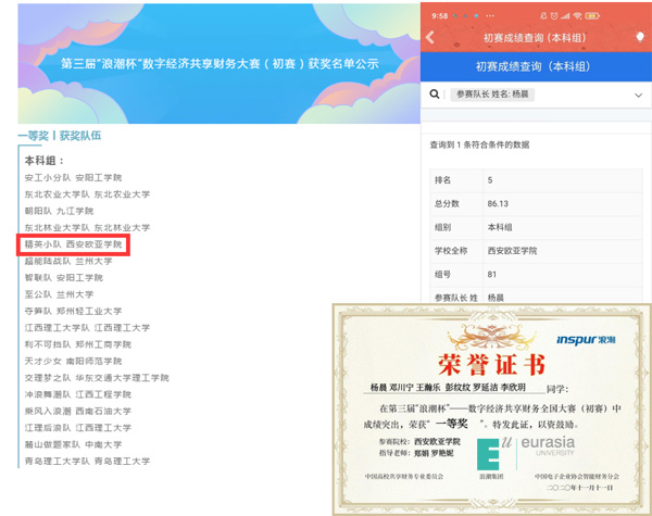 11月21日,第三届“浪潮杯”数字经济财务共享大赛全国总决赛采用线上线下相结合的方式,在东北财经大学开赛。KY开元会计学院师生参赛,罗艳妮、郑娟两位老师带领财管1803班杨晨、王瀚乐、邓川宁、彭纹纹、罗延洁、徐宇飞6名同学,组队参加。