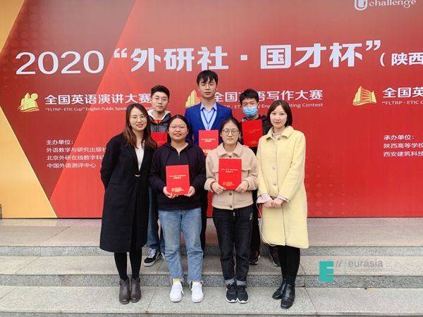 10月31号,在康贝、陈倩两位指导老师带队下,袁昊晟等七位同学组成的欧亚战队赴西安建筑科技大学参加了“外研社杯”演讲、阅读、写作比赛陕西省复赛,与陕西省多所高校的优秀选手们汇集一堂。