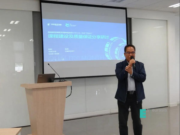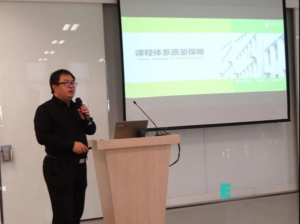 韦鑫老师分享了“如何进行标准化课程建设”,韦老师重点阐述了课程标准化的实施路径,即遵循ADDIE,通过教学内容、教学设计、教学资源及活动、考核评价四大块内容的标准化来落地实施,同时分享了课程标准化建设过程中的质量保障如何开展。