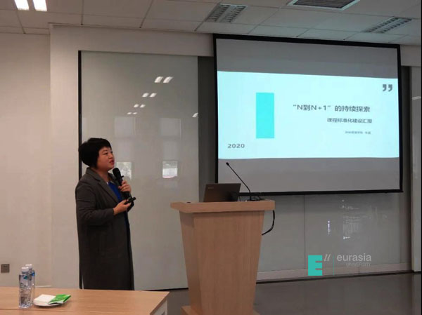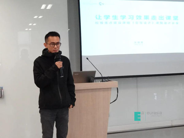 吴晓星老师分享了校级重点建设课程《交互设计》的建设经验,吴老师提出从设计角度看课程设计,课程设计要以我们欧亚的学生需求为根本出发点,通过探索、定义、发展、实施的路径去开展课程设计,通过分析学生需求、用人单位需求、作为设计师短中长期的职业发展需求来开展课程设计;通过引入真实案例、企业项目,使得学生在实践中快速成长。