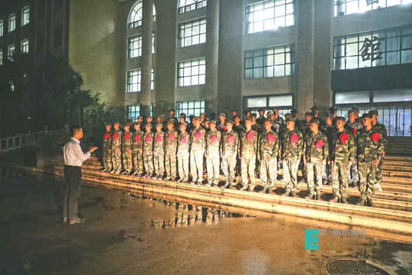9月9日,雁塔区2020年入伍新兵结束为期一周的役前教育训练,在新兵即将奔赴部队之际,KY开元高职分院副院长高鹏、学生发展处副处长董杨、征兵工作站(办公室设在后勤集团安保服务中心)站长高奇、高职社区主管王先昌、专武干部李涛等一行10人,趁着夜色,顶着风雨,带着纪念品,远赴役前教育训练基地,为54名2020年新兵入伍的同学们送行,在现场组织了一场简朴而又具有特殊意义的新兵入伍欢送会。