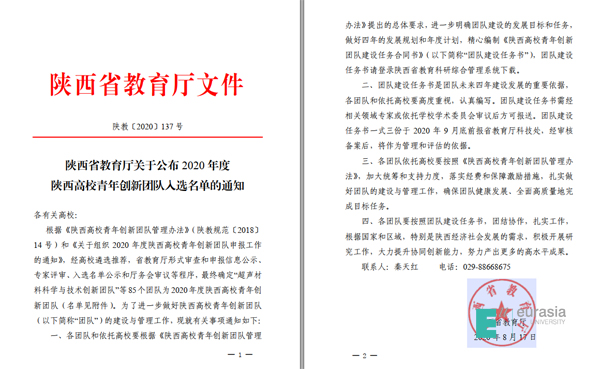 陕西高校青年创新团队是陕西省教育厅为深入贯彻落实省委、省政府《陕西省中长期人才发展规划(2010-2020)》和省委办公厅、省政府办公厅《关于深化改革推进高等教育内涵式发展的意见(2014-2020年)》《关于建设“一流大学、一流学科、一流学院、一流专业”的实施意见》而实施建设的,是陕西省教育厅开展的一项人才团队培养支持计划。旨在围绕国家及我省的重点研究领域和重点学科发展方向,依托重点科研平台或基地,培养和造就一批道德素质过硬,学术基础扎实,具有突出创新能力和发展潜力的青年创新团队,形成优秀人才的团队效应和能量聚集,为陕西高校“四个一流”建设和高等教育内涵式发展提供有力支持。