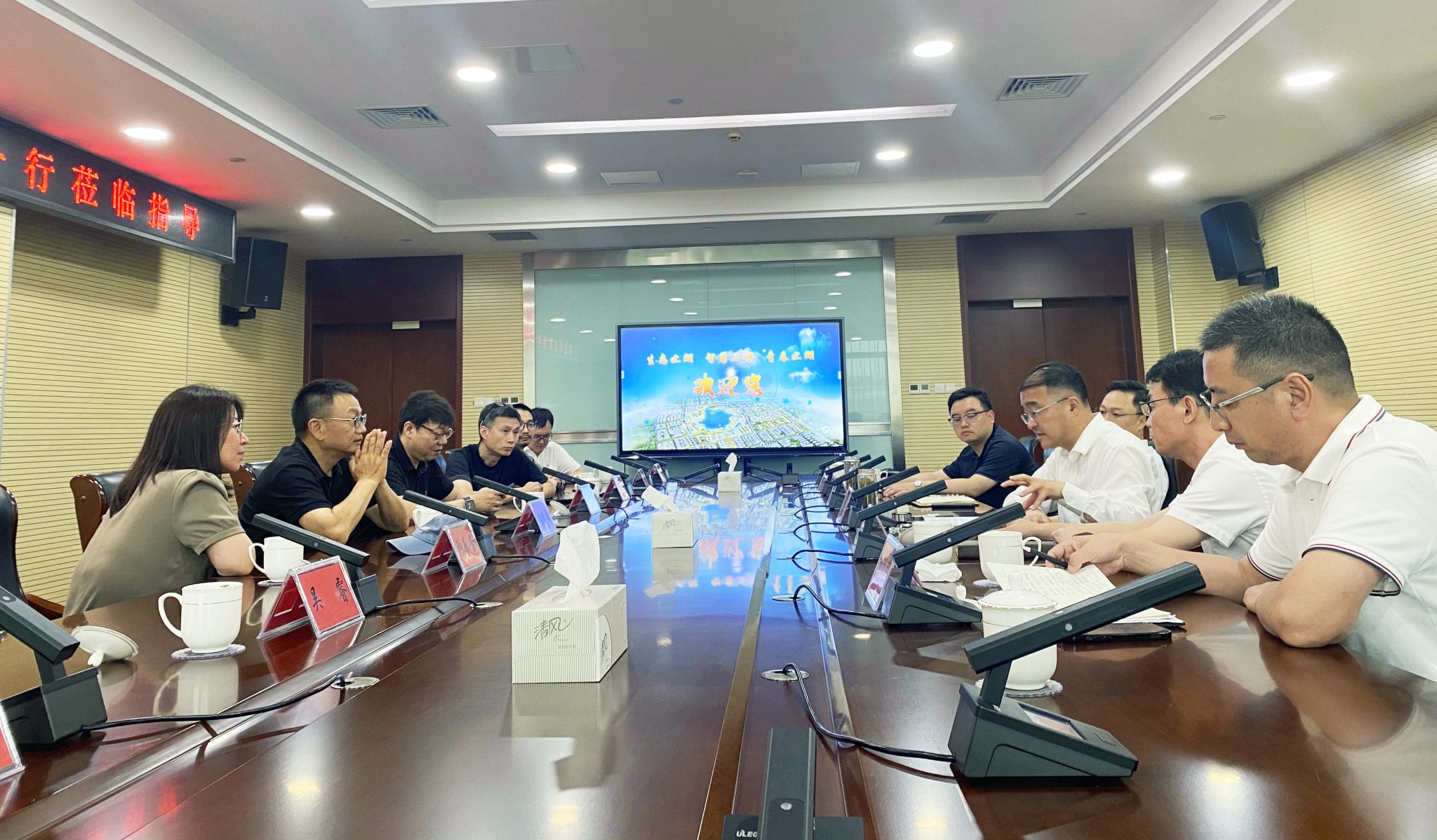 在与上湖创新区管委会的座谈交流会上,双方就园区发展、校地合作、科创服务等方面进行了探讨交流。胡建波董事长表示,上湖创新区在加快创新体系建设、城市功能配套完善、产业项目招引和生态环境涵养等方面涌现的亮点令人印象深刻。