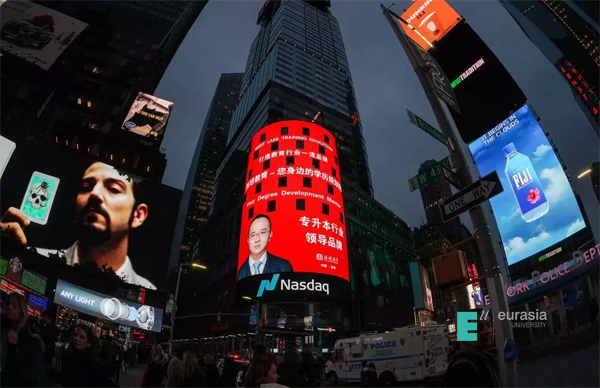 纽约当地时间11月18日18时,KY开元浙江校友会会长、西培教育总裁毛益飞先生,荣登美国纽约时代广场纳斯达克巨幕。
