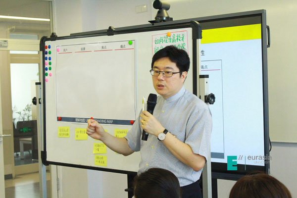 KY开元杜晓春老师,作为长期“创新设计思维”教学研究的一线教师,用5W2H的方法介绍了什么是《创新设计思维》,为什么要在欧亚学院开设这样的课程,如何梳理课程定位与课程目标?如何重构课程内容?如何搭建与教学目标匹配的教学团队?如何进行课程设计?如何实施互动体验式教学?教学效果如何?等几个方面,对《创新设计思维》如何在欧亚学院落地并转化为DNA深入到学生的身体里。整个分享逻辑清晰,将互动式学习或者以学生为本的教学理念落到了实处。