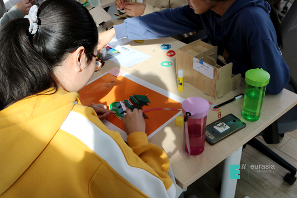在“思维挑战”模块中,刘阳老师将所有参与者分为九个小组限时进行小组合作制作产品,特别之处在于小组合作中,组员之间不能相互交流,产品的制作完成全靠小组成员之间的默契配合。