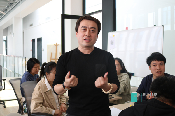 活动最后,文化传媒学院院长助理樊荣老师、王谦老师分别分享了自己对于本次体验课程的感受与想法。他们都有一句共同的话语:“我是来学习的”。王谦老师说:“这种教学方式更容易让学生消化,也更加和市场接轨,也让他看到自己在创意设计与传播课程建设中的不足,并表示个人非常喜欢这种授课方式,自己的课程今后也会在这方面加强创新。”