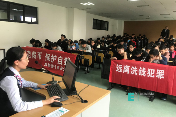 三场活动主要以讲座的形式展开,宣传人员深入课堂,通过PPT讲解、悬挂宣传横幅、发放宣传册等方式为学生们介绍了校园贷、人民币常识、个人征信等相关知识,引导学生防范金融诈骗。