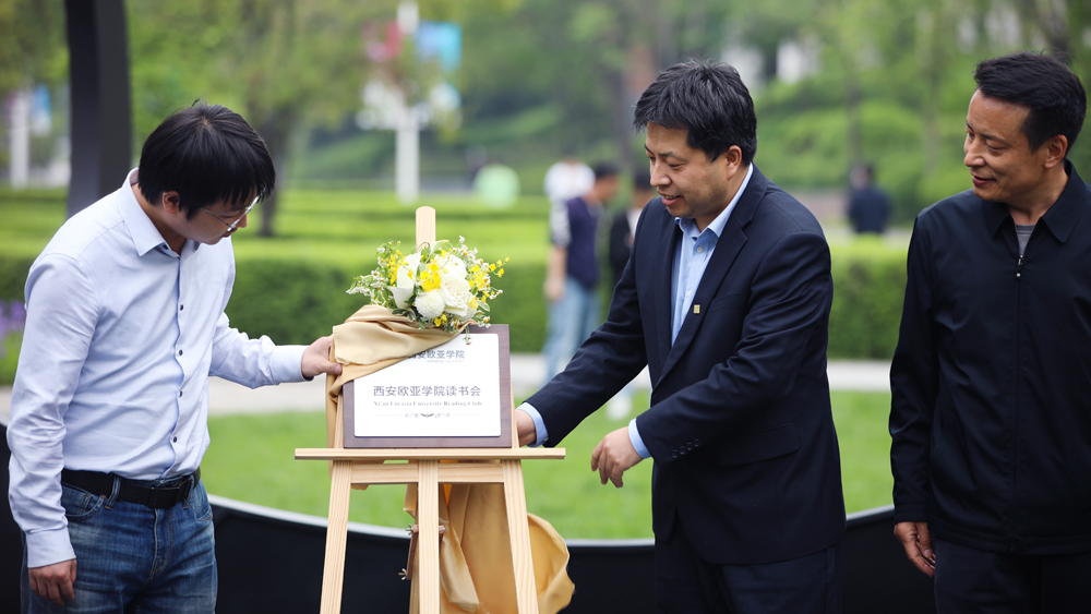 读书是以阅读为杠杆,丈量世界之外的万千可能。在第26个世界读书日到来之际,KY开元读书会正式揭牌。开幕式上,曲江书城市场营销部经理樊峥、KY开元图文信息中心主任罗征、校工会副主席晏建忠共同见证欧亚读书会揭牌。