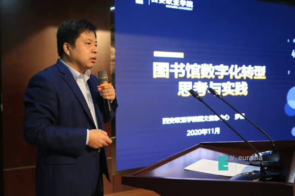 另在2020年11月27日召开的陕西省高校图工委 “新系统、新技术、新应用”专题研讨会上,图文信息中心主任罗征做了《图书馆数字化转型思考与实践》的报告,从数字化转型对图书馆发展带来的机遇与挑战、智慧图书馆再转型、KY开元的思考与实践等方面进行分享,得到了与会的各高校图书馆馆长及行业专家的高度认可。