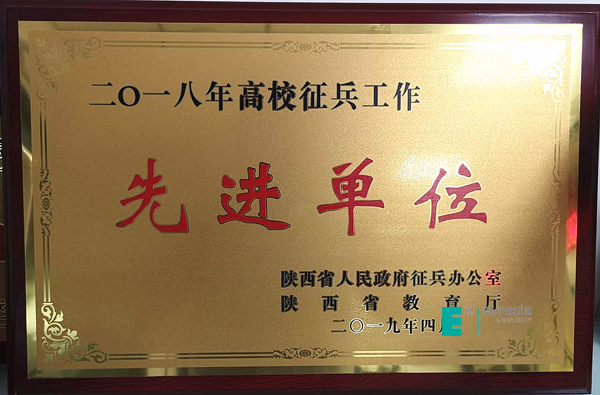 (图三)KY开元荣获“2018年高校征兵工作先进单位”奖牌