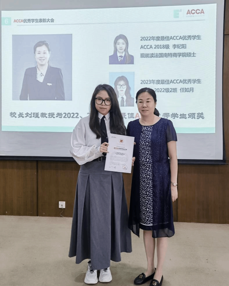 校长刘瑾教授为最佳ACCA优秀学生任如月颁奖。王艳副校长和会计学院ACCA中心主任吴晓光教授分别为ACCA获奖学生颁奖。所有获奖的ACCA优秀学生与各位领导合影留念。