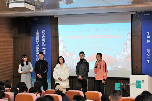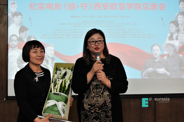 对于这部电影,刘瑾校长也有她自己的看法与见解:“这部电影不同于中国现有的商业片类型,它在影片中传递的价值观与美德,是现在很多人都缺失的。作为现在年轻的一代人,十分有必要传承和弘扬。影片改编自陕西真人真事,对于陕西文化的宣传也是十分有意义,这样一部电影,能在欧亚学院与大家见面,我感到十分荣幸和骄傲。同时,也希望同学们能够走进影院,观看这一部令人震撼和感动的电影,并且将这部优秀的电影介绍给自己的家人以及朋友。”