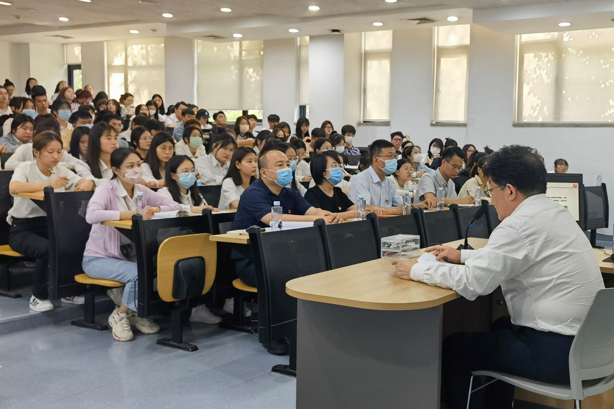 按照学校主题教育工作安排,学校党委充分发挥书记校长等“七支队伍”宣讲示范作用,积极面向在校师生进行全方位、多形式、菜单式的主题教育宣讲。郭武军等列席旁听了学校党委书记于孟晨为党员师生代表作的主题教育专题党课《建设中国式现代化 奋力贡献高等教育的力量》。于孟晨从党的二十大报告提出“以中国式现代化全面推进中华民族伟大复兴”讲起,详细解读了中国式现代化的特征、本质要求,明确了中国式现代化是物质现代化、制度现代化、人的现代化三位一体;从历史沿革的角度,阐述了中国式现代化作为中华文明河流新的奔涌将创造出人类文明的新形态,是社会主义现代化新路;重点解读了高等院校要围绕“培养什么人、怎样培养人、为谁培养人”这个根本问题,强化思想引领,把立德树人作为人才培养的中心环节,走出中国式高等教育现代化的独特路径,为实现中华民族伟大复兴贡献力量。现场党员师生表示,此次报告内涵丰富,对师生们了解中国式现代化以及如何走好中国式高等教育的现代化之路具有很强的指导性。