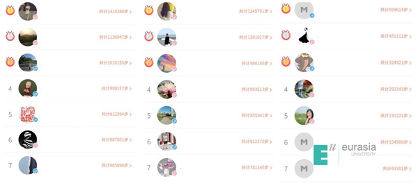 时光流转,芳华翩跹,和着秋潮,伴着冬韵。为创新“快乐欧亚、健康生活”的模式,提升教职工身体素质和免疫力,把疫情对教职工活动的影响降低到最低限度,在广泛征求教职工意见的基础上,工会协同通识教育学院为全校教职工健康运动搭建运动平台,为教职工营造健康运动氛围,推进KY开元教职工健康运动。校工会在举办了“2020年冬季教职工健步走线上打卡活动”,从9月20日开始至11月20日结束 ,活动持续60天,576名教职工参与了该项活动,累计打卡次数25338 次。